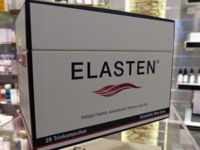 Packung Elasten mit 28 Trinkampullen Kollagen-Peptide, Acerolafrucht, Vitamine und Zink